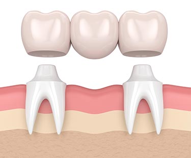 Si une dent manque, il est important de la remplacer avec une fausse dent (ou dent artificielle) dès que possible. Cela empêchera les dents qui restent de se désaligner et de causer d’autres problèmes. Le pont, aussi appelé “pont fixe” ou “prothèse partielle fixe” est fixé de façon permanente aux dents saines voisines et remplace une ou plusieurs dents.